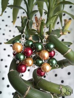 Połączenie perełek i koralików crackle a dla przełamania czerwieni małe czarne kwadraciki. Kolczyki są lekkie i eleganckie, będą pasowały do szkoły, pracy i na randkę - wystarczy podkreślić usta czerwienią i noc jest Twoja :-) Bardzo fajnie będą się prezentować u osób mających krótkie włosy.
