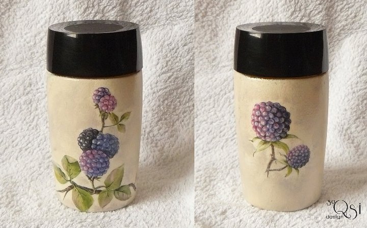 Wazon malowany a następnie decoupagowany.