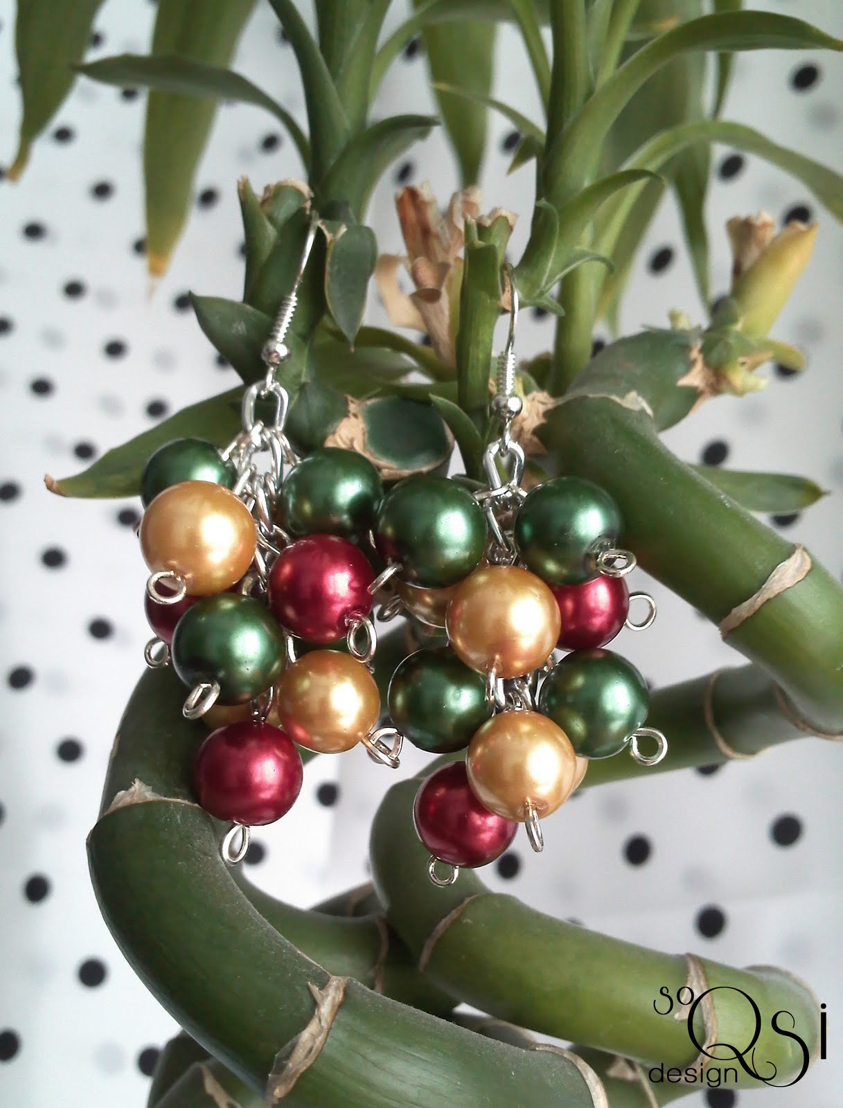 Połączenie perełek i koralików crackle a dla przełamania czerwieni małe czarne kwadraciki. Kolczyki są lekkie i eleganckie, będą pasowały do szkoły, pracy i na randkę - wystarczy podkreślić usta czerwienią i noc jest Twoja :-) Bardzo fajnie będą się prezentować u osób mających krótkie włosy.